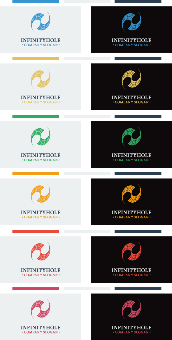 Logo of a stylized Infinity Hole. Full vectors, this logo can be easily resize and colors can be changed to fit your project. Flat versions for print also included.